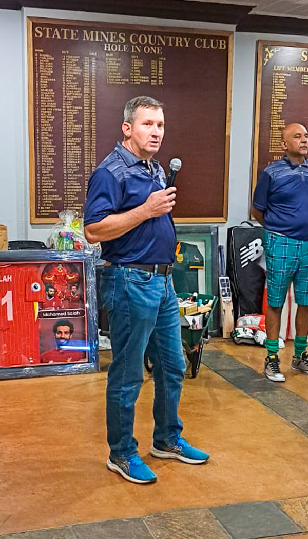 Eastern Storm Veterans Chairperson Brendon Stolle Addressing the Over 40's Eastern Storm Team at their recent Golf Day Fund Raiser.